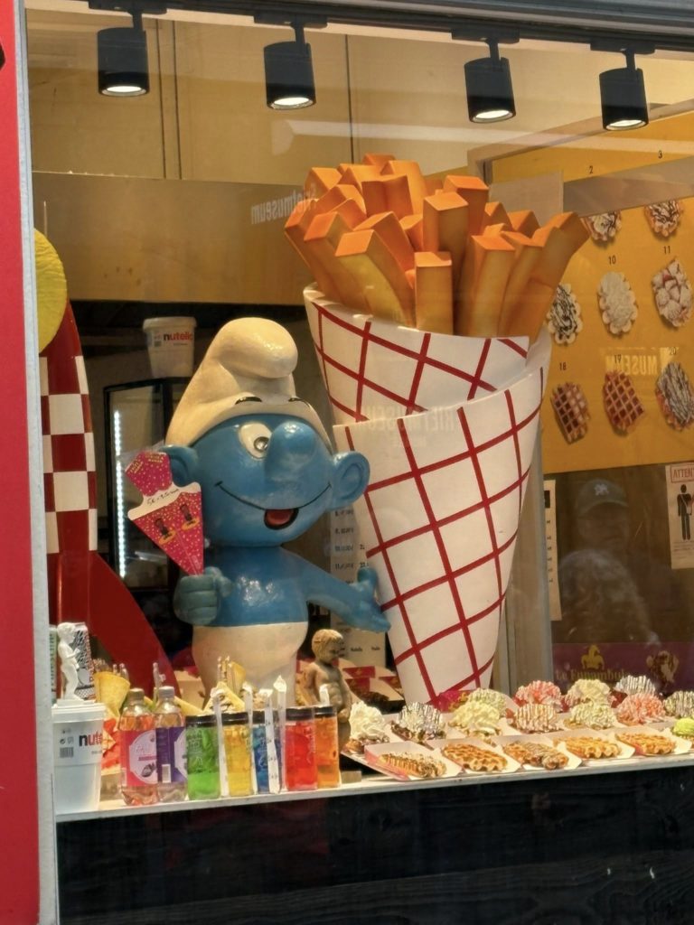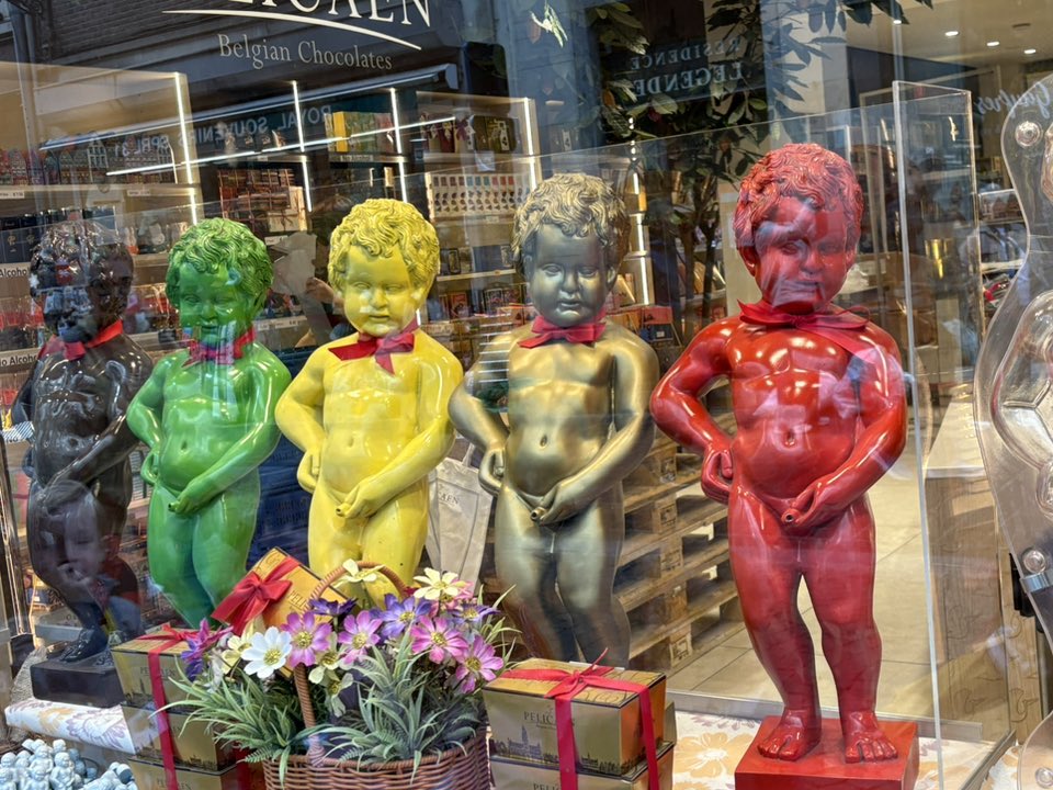 Ils ont également admiré de magnifiques vitrines : Tintin, les chocolatiers « Élisabeth » à l’effigie de notre future reine des Belges, sans oublier les gaufres, les frites… et bien sûr le Manneken Pis, décliné sous toutes les formes possibles.