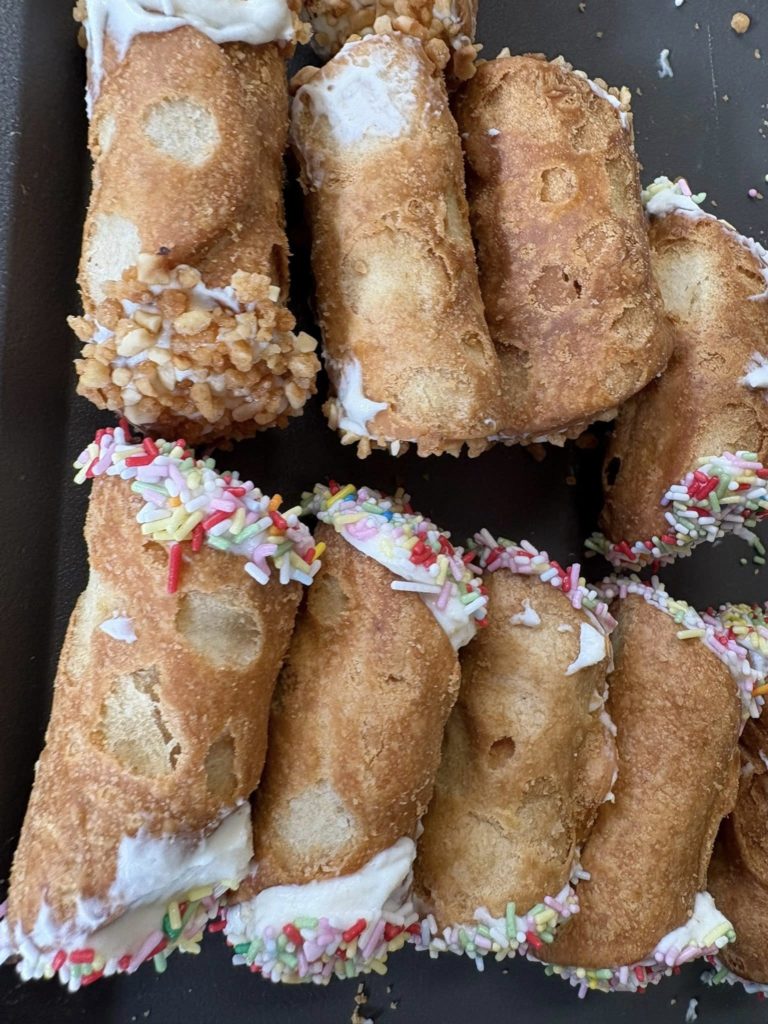 Nous avons appris à écouter ses conseils : tamiser la ricotta, la sucrer (mais pas trop !), remplir les cannolis d’un côté puis de l’autre à l’aide d’une petite cuillère, et enfin choisir la garniture de notre choix.