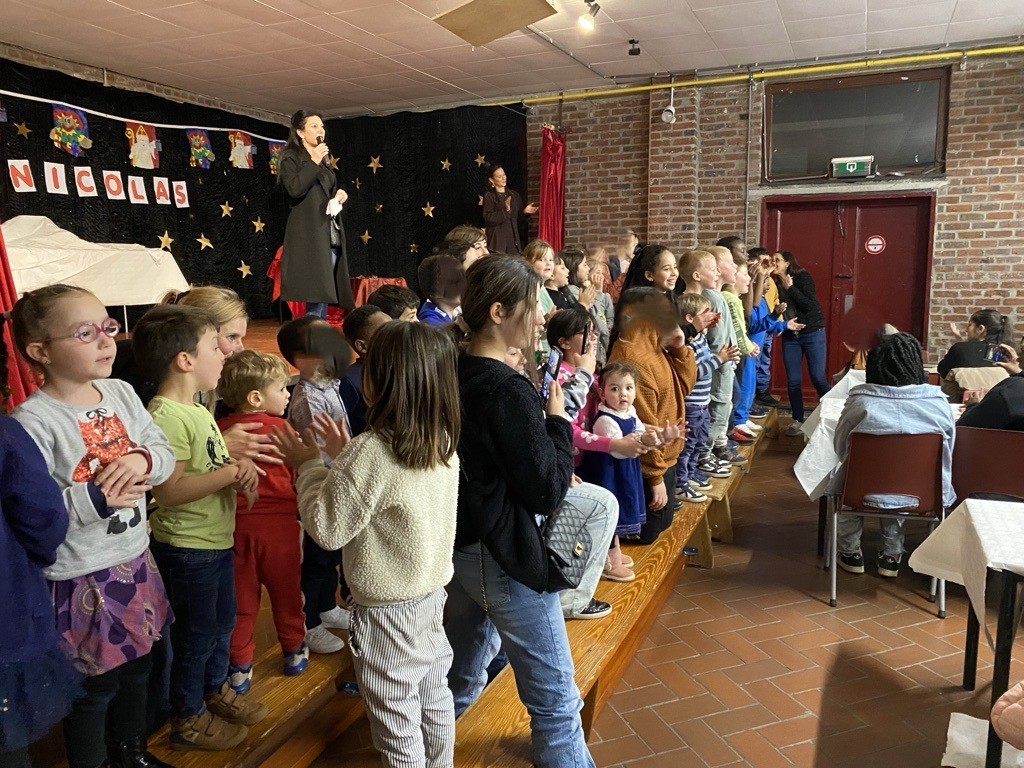 Chaque classe a eu le plaisir de chanter une petite chanson, remplissant la salle de musique et de sourires. Les enfants ont ensuite reçu de délicieuses friandises ainsi que de jolis cadeaux pour leur classe. ![]()