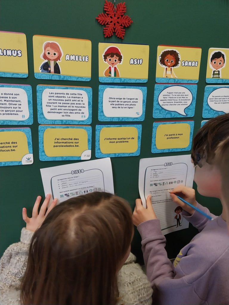 Cette activité a aussi permis aux enfants de découvrir le rôle de Child Focus, ainsi que les moyens de contacter l’organisation. Les échanges ont encouragé une réflexion critique sur les situations problématiques, en ligne comme hors ligne, et sur les bonnes réactions à adopter.