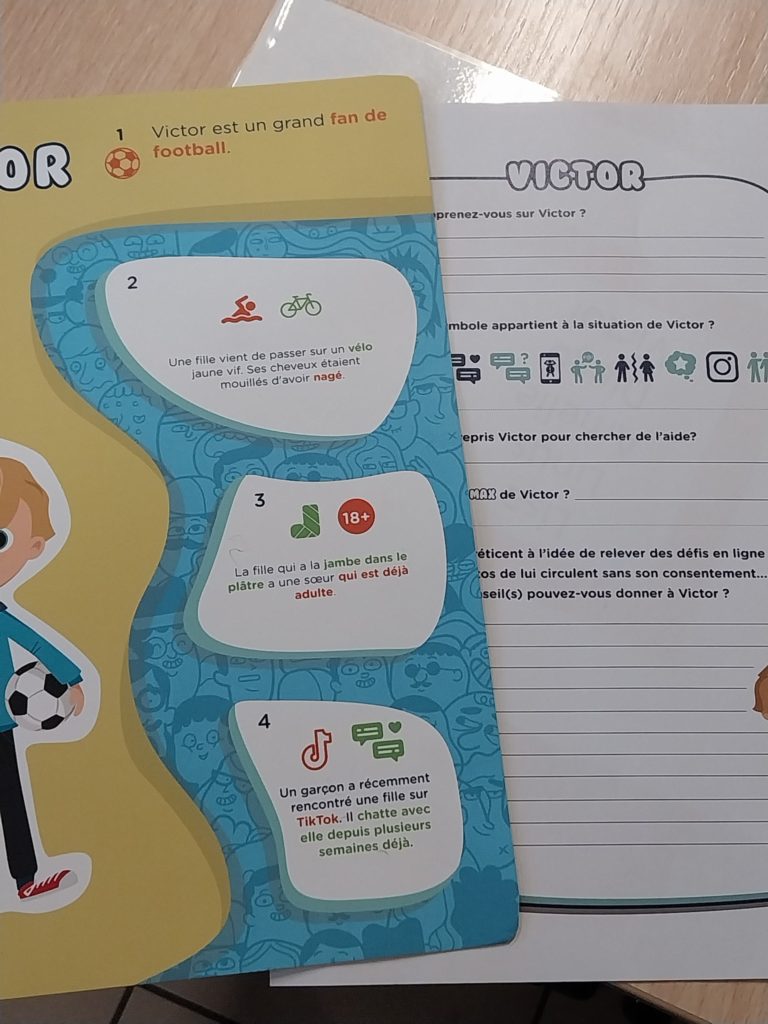 Les élèves ont rencontré 9 personnages fictifs, chacun confronté à une situation difficile. Leur mission ? Les aider à aller mieux en cherchant du soutien auprès d’un adulte de confiance ou d’une association (Child Focus, AMO, PMS, 103…) . Une belle façon de comprendre qu’il ne faut jamais rester seul face à un problème et que de l’aide se trouve toujours autour de nous.