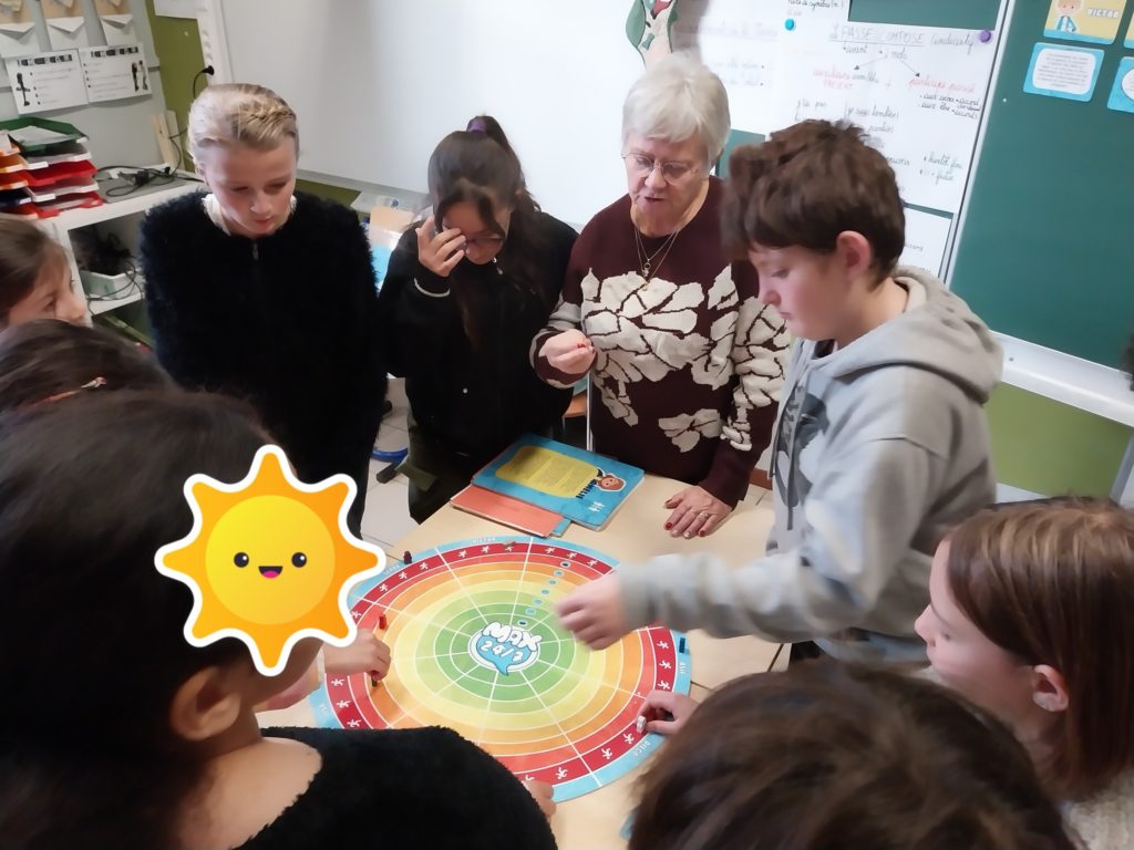 Madame Fabienne, une animatrice de la Croix-Rouge est venue réaliser un jeu dans notre classe.
